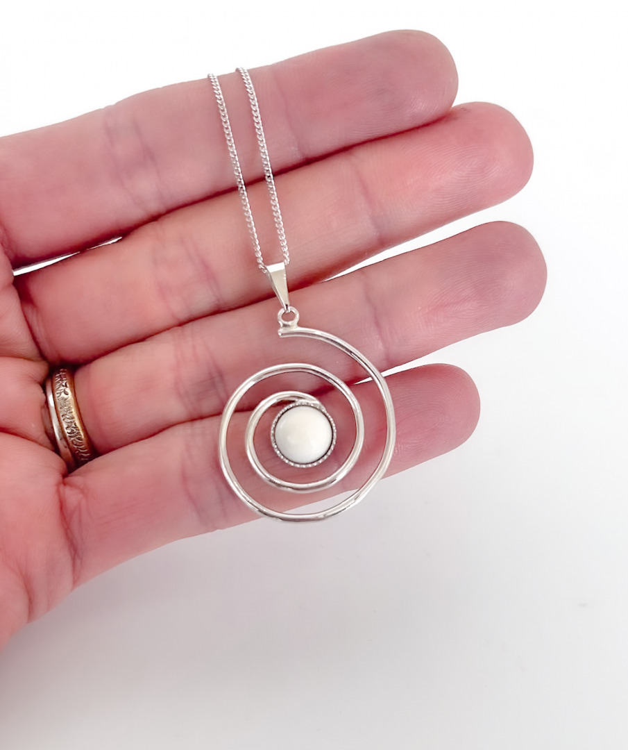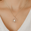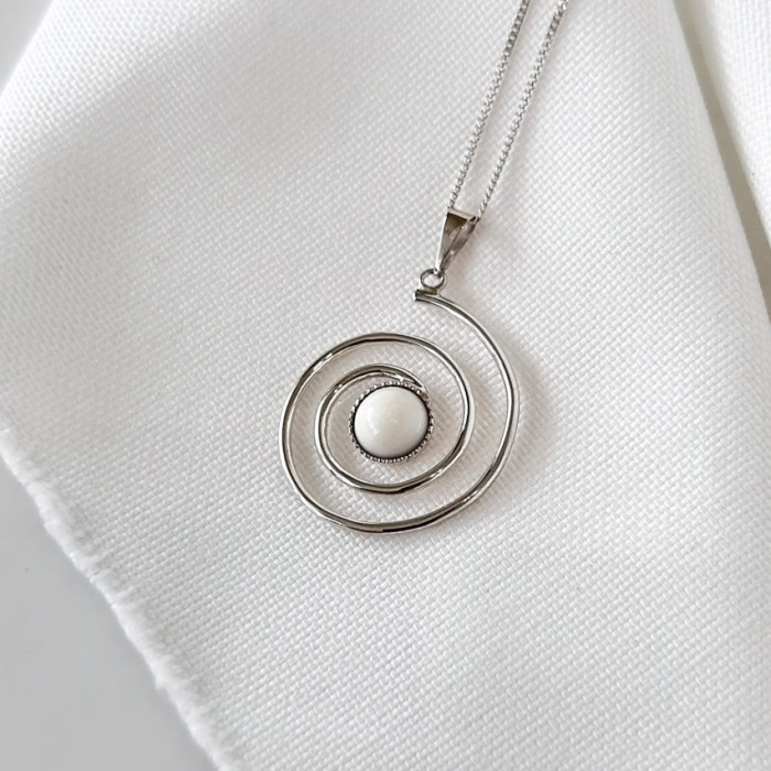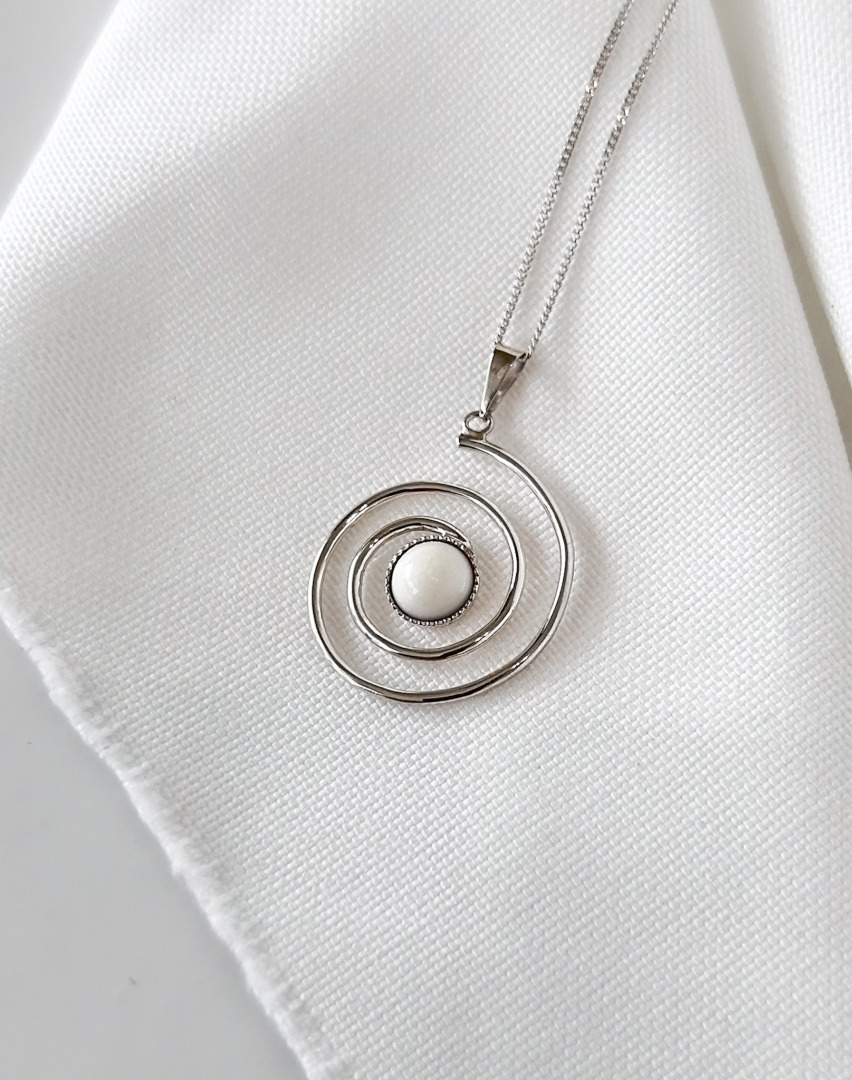 This elegant pendant features a spiral design, representing continuity, growth, and the journey of life. At its center lies the breast milk stone, a timeless symbol of motherhood and the nurturing bond between mother and child.