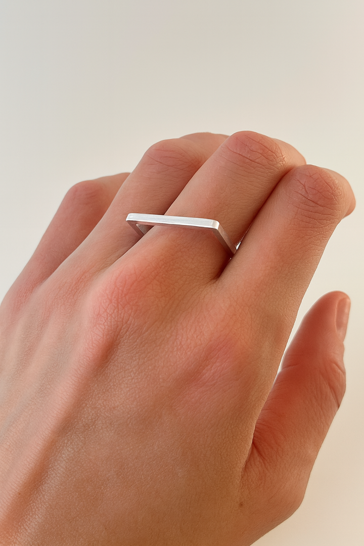 A design that breaks away from the ordinary — this square-shaped ring is modern, sleek, and full of personality. Handcrafted one by one with great care, available in Sterling Silver (925) or 18K Yellow Gold.