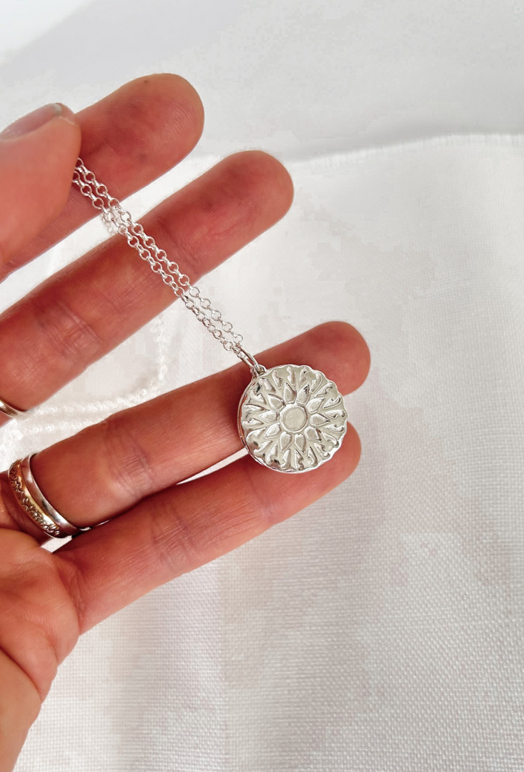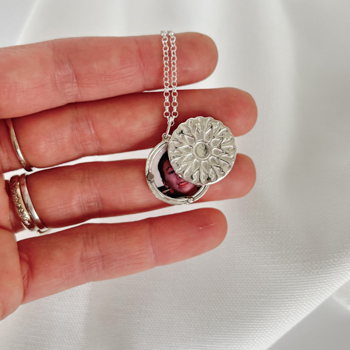 Handmade in 925 sterling silver, this locket is a minimalist jewel full of meaning. With its delicate design, it is created to hold close to your heart what already lives within it — a small photo or drawing of a loved one.